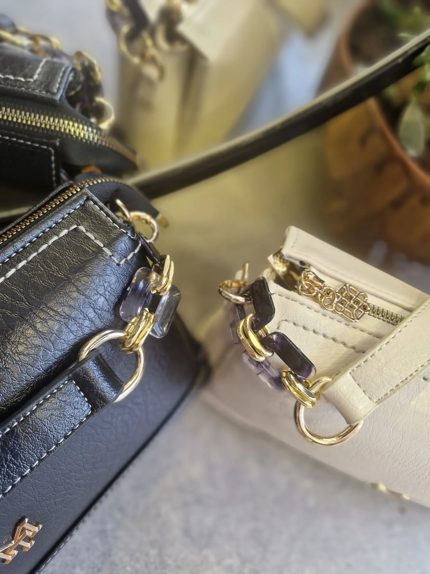 Fendi Krem Çift Kayışlı Mini Boy Çanta