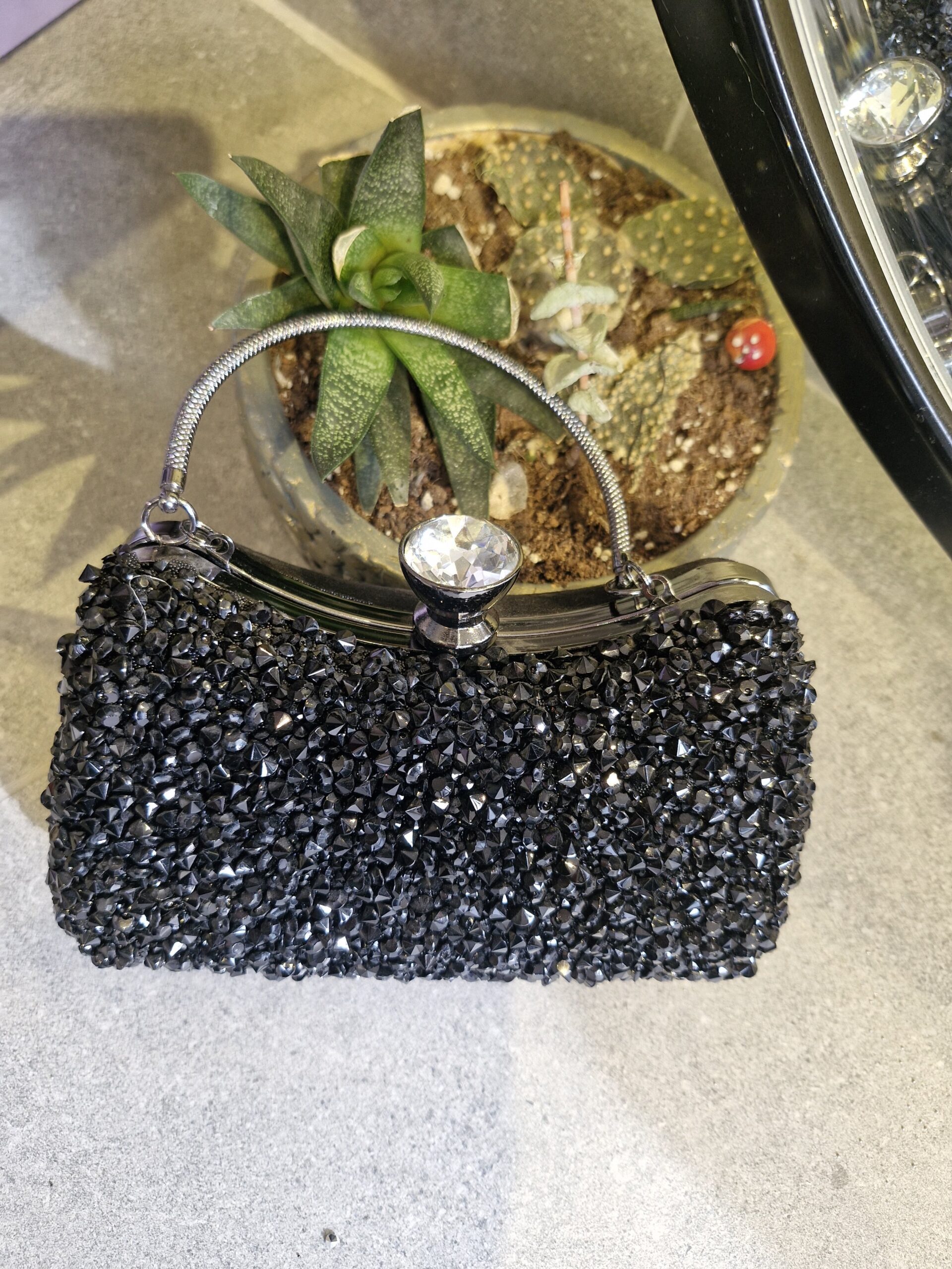 Full Siyah Taş İşlemeli Abiye Çanta