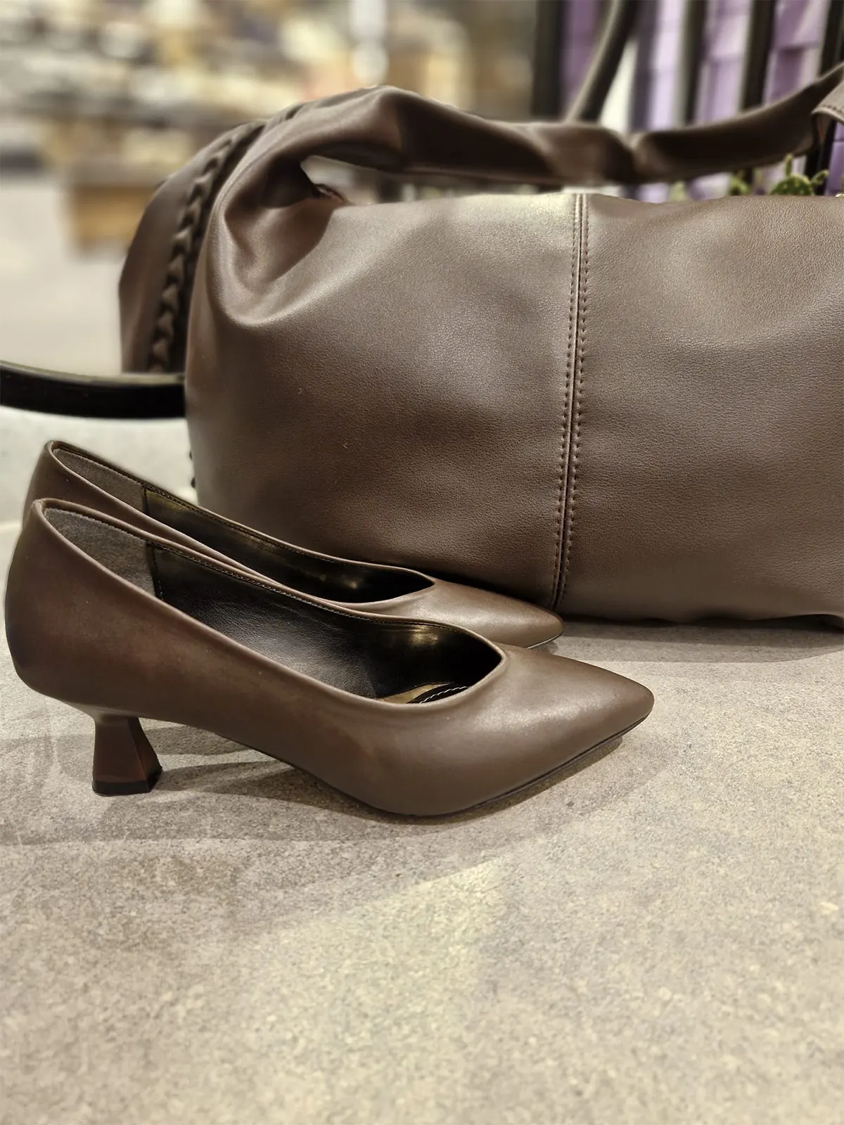 Minashka Krem Kısa Topuk Önü Çap Detaylı Topuklu