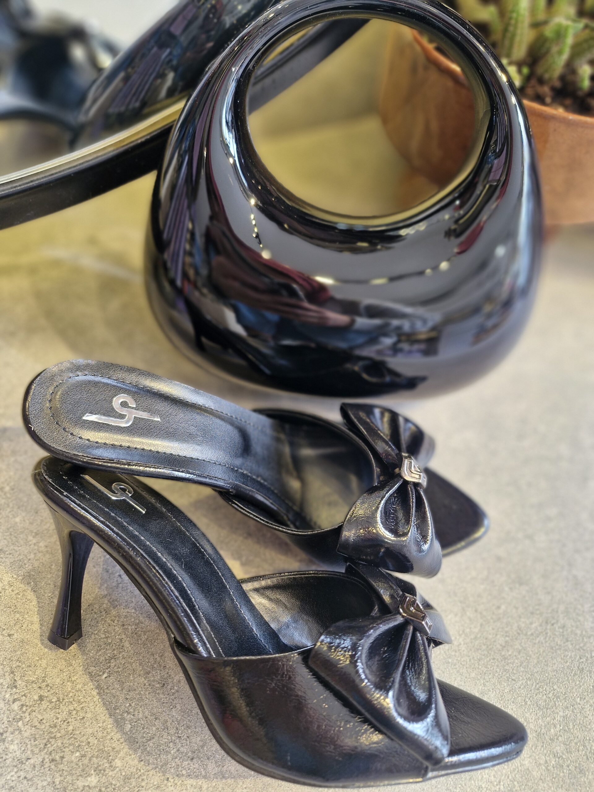 Siyah Fiyonk Detaylı Topuklu Terlik
