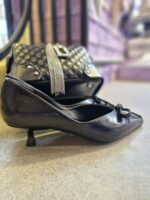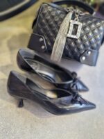 Siyah Mini Topuk Fiyonk Detaylı Topuklu
