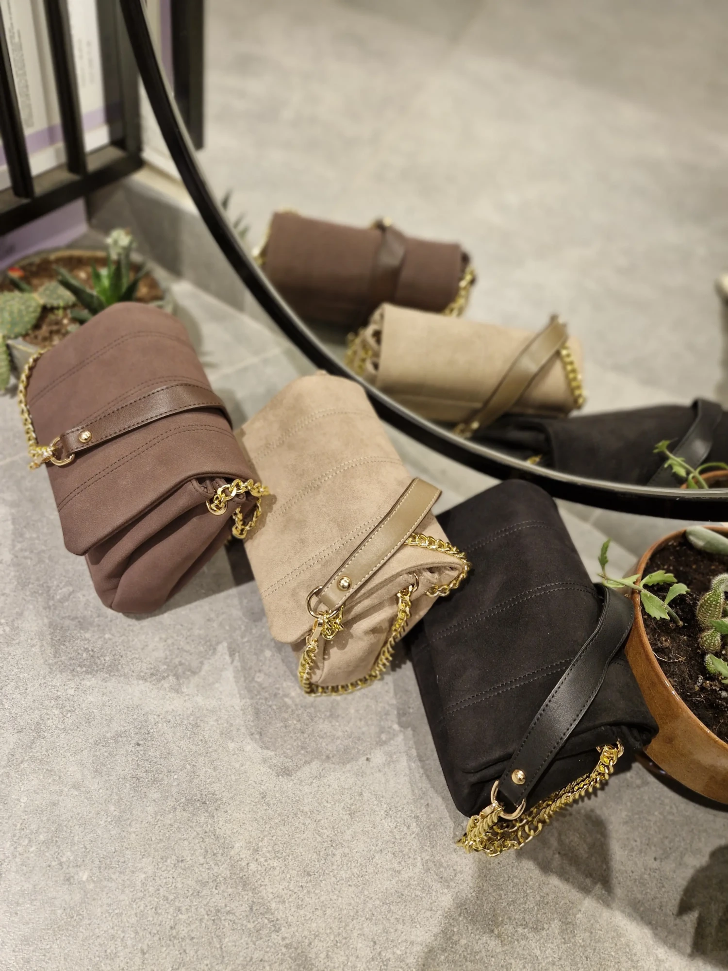 Süet İdeal Boy Uzayıp Kisalabilen Zincir Detaylı Çanta