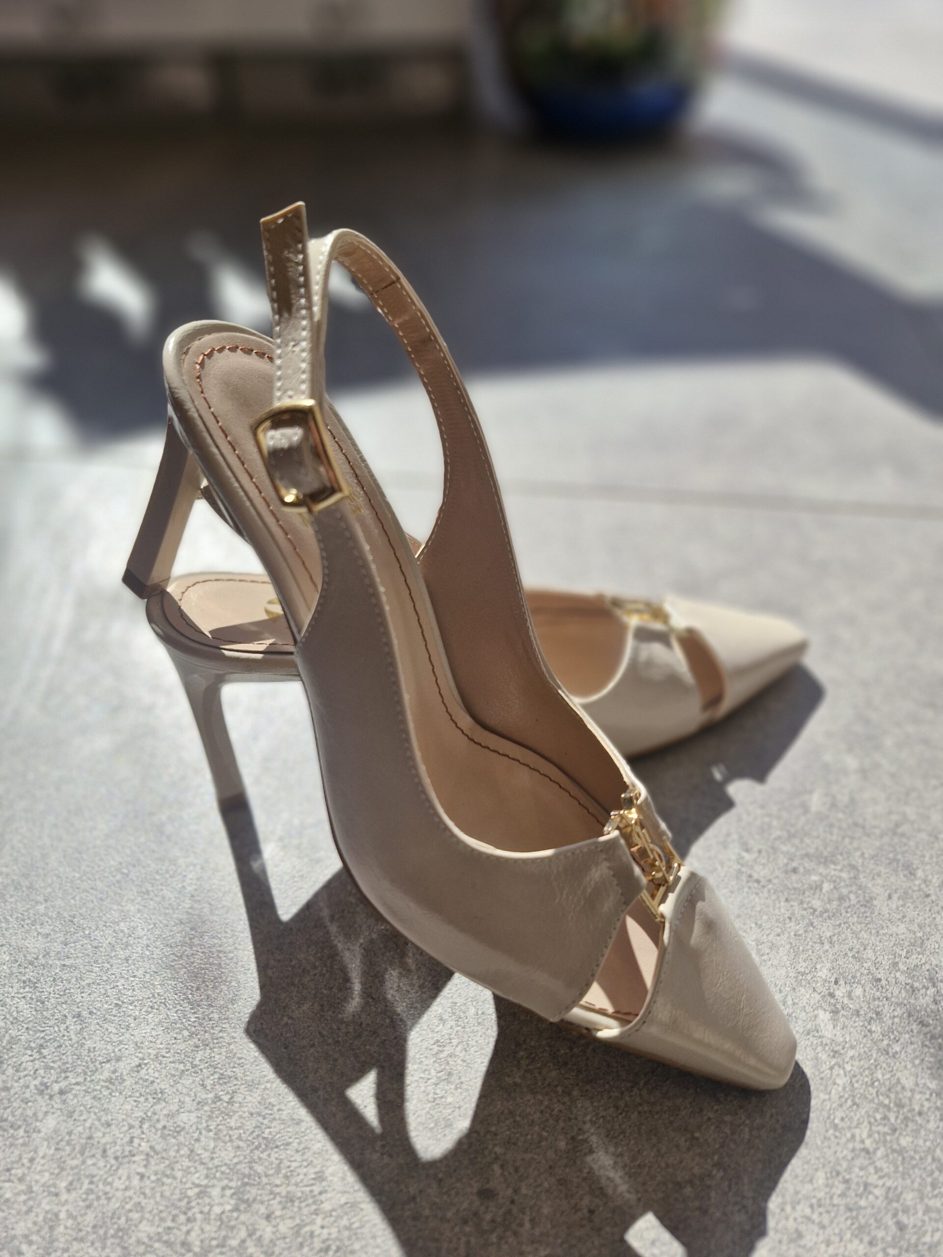 YsL Ön Detaylı Krem Topuklu